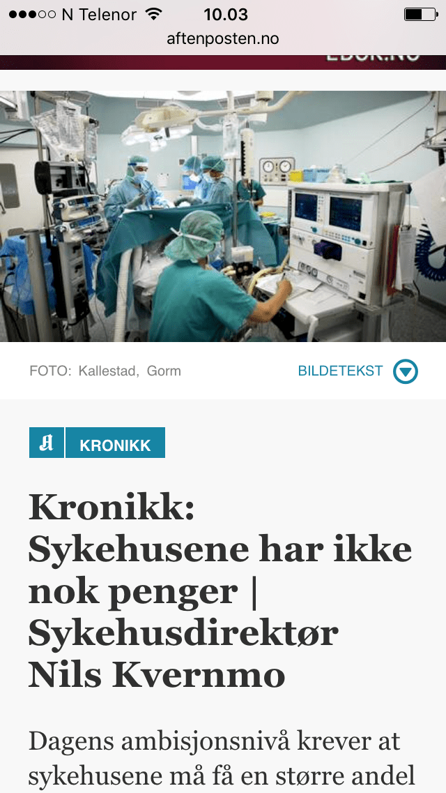 Prioriteringer og forvaltning innad i foretaksmodellen bør diskuteres. Blir politiske vedtak fra Stortinget fulgt opp? Blir bevilgningene fra Stortinget brukt som forutsatt?